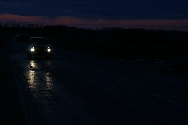 На фото – довольно качественный асфальт. Но уже через 200 метров началась «боевая» дорога, напоминающая что мы устремляемся прочь от цивилизации. После зимы стало ещё больше ям, отчего машину иногда аж трясло. Километр за километром … Но скоро всё завершилось – мы были на месте. Теперь медленная и спокойная езда по лесу … Лес … Глухой лес с множеством дорожек … И разнообразная живность. И понадобилось немного времени, чтобы повстречать оленей перебегающих дорогу. А одного даже сфотографировать:
