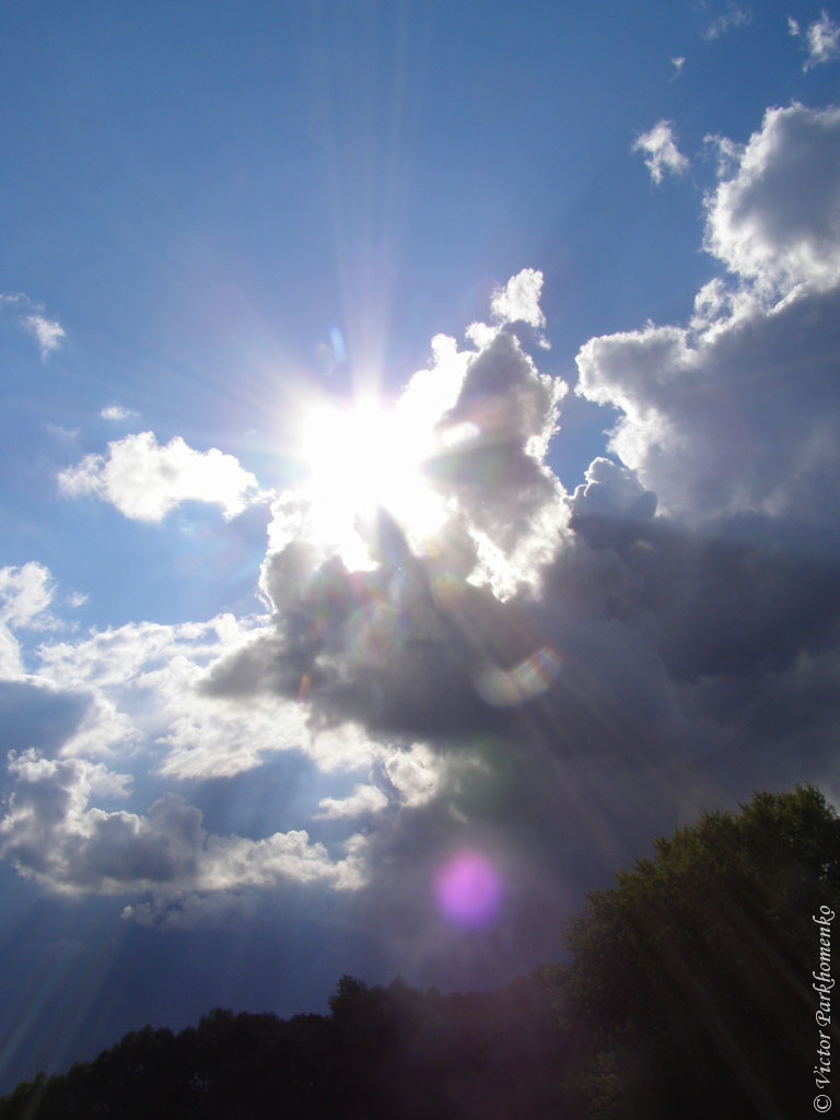Обожаю моменты, когда среди грозовых туч прорывается лучик солнца. В этот момент краски очень насыщенные и всё аж горит. Непередаваемые ощущения))) Также подобное увидеть можно в утреннее и вечернее время.