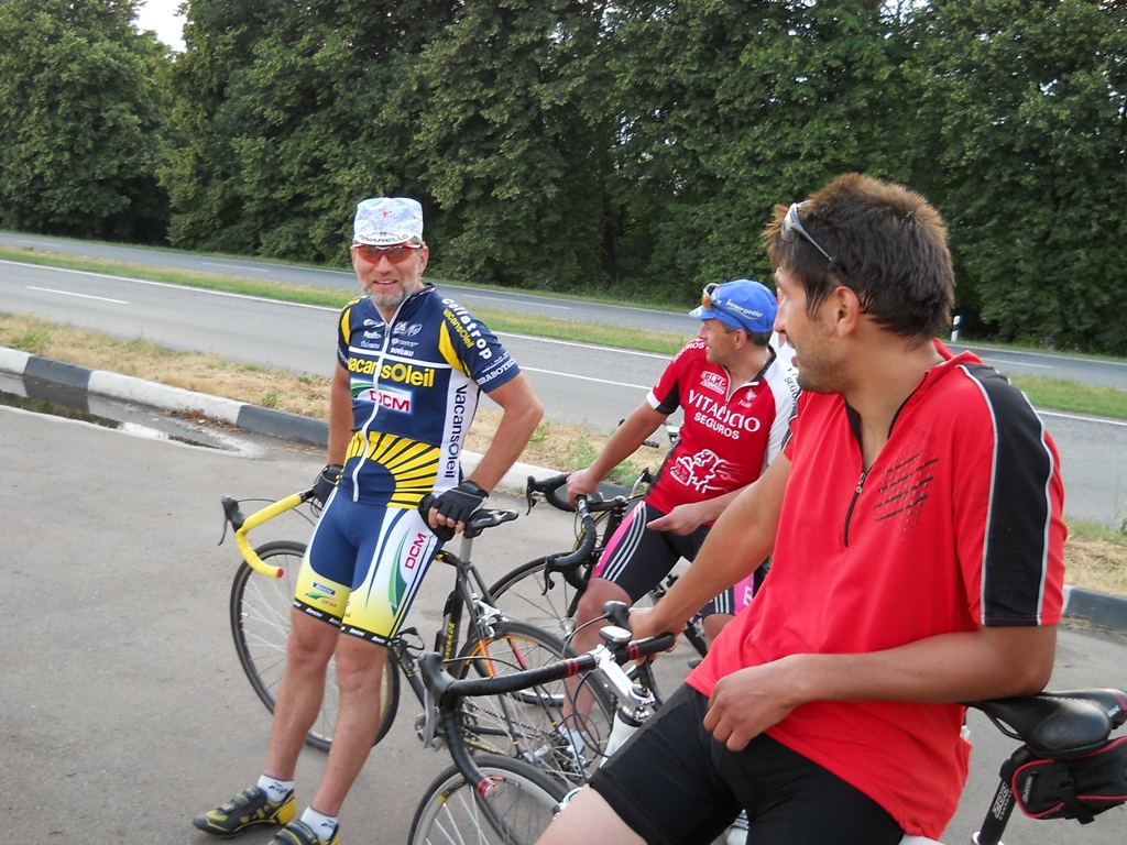 Небольшое совещание внутри тройки и мы решили не ломать ноги и не пытаться крутить сильнее комфортного темпа и еще наметили остановку в Ольшане. Выехали из Приюта. Вначале тяжело было крутить, ноги затекли и болел зад, после долгих остановок у меня всегда так (это большой минус длительных остановок!!! Может иногда стоит минут 10 посидеть и вперед). Еще стала подводить левая нога. 4 года назад был сложный футбольный перелом с вывихом голеностопа :bad: . Теперь вот после серьезных нагрузок дает о себе знать…Но где-то после 10-20 км от Ромнов покрутили 28-27..В Ольшане передохнули специально перед участком Комышанка-Штеповка, все таки там горки могли добить..Спокойно и без резких движений залез на горку в Штеповке..Потом довольно бодро заехал прокрутил Сулу. А в Симоновке даже появилась спортивная злость. Раскрутили с попутным ветерком да еще вниз до самого Финиша. Смотрю на спидометр 39-41 :crazy_pilot: …Я сам себя удивил. А вот и Финиш, вижу белые буквы Сумы. Обажаю эти буквы!!!! :Yahoo!: Тут ждут доехавшие участники.