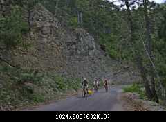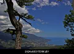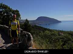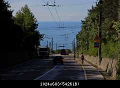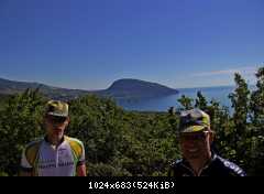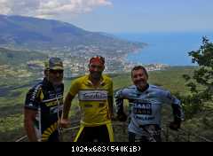 На выезде на Южнобережное, Гвадемаус, как настоящий водитель, пропустил всех справа, и чуть не снес жЫп, который ехал слева :shock: :D и мы начали карапкаться на обзорную площадку возле Охотничьего. Карапкаться сильно сказано - старые дороги, построенные еще для гужевых повозок, не убивают градиентом, потому ненапряжно катили вдыхая полной грудью вкусный целебный воздух, наслаждаясь отрывающимися пейзажами. На спуске по сторонам смотреть все-равно не получится :? На удивление трафик был практически нулевой...