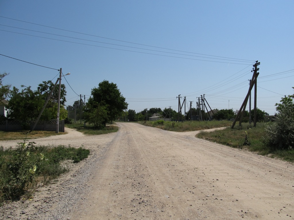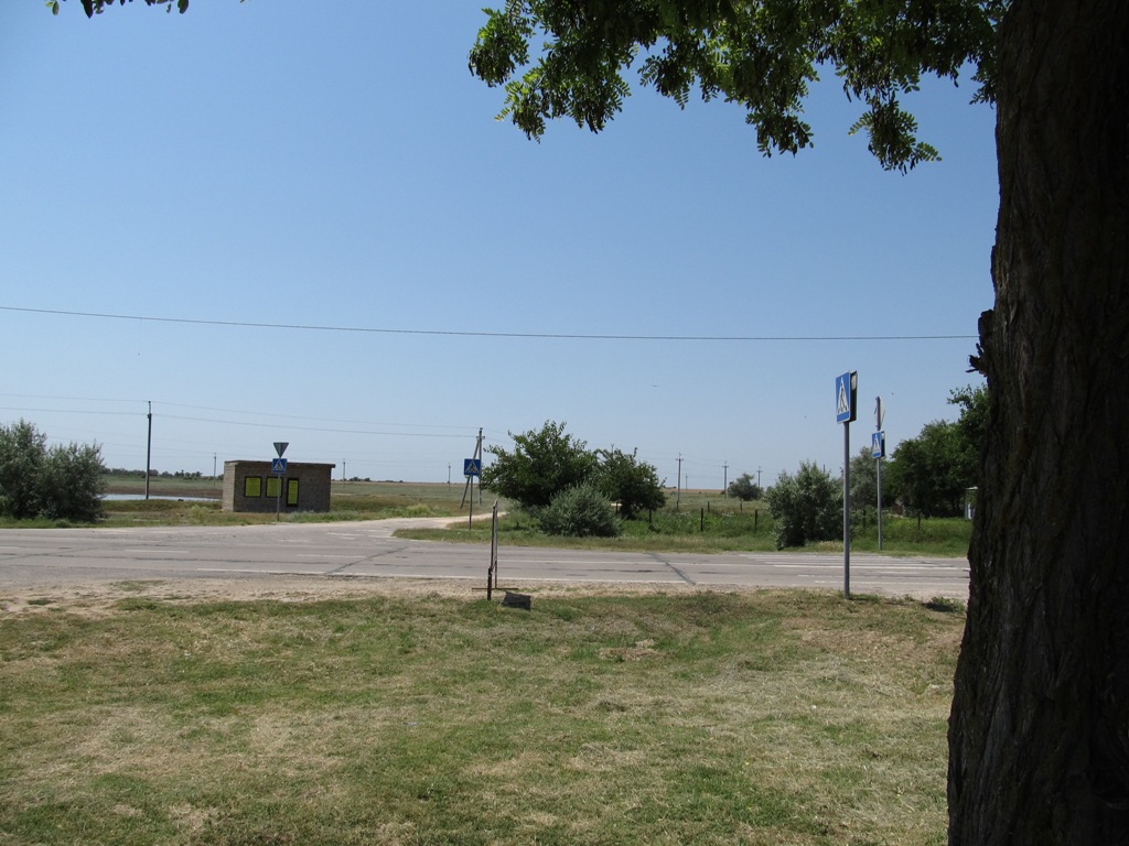 Небольшой встречный ветер и низкие передачи для разогрева; потихоньку проезжаю Гениченск – Счастливцево – Стрелковое. За Гениченском открываються пейзажи на сиваши. Жара напрягает. В Стрелковом, последнем селе перед арабаткой набираю 3 2-х литровых бутылки газировки и + литра ситра (думаю на 80 км арабатки хватит). В Стрелковом бетонная дорога заканчивается и начинается щебенчатая, которая плавно переходит в пещаную за последней базой отдыха.
