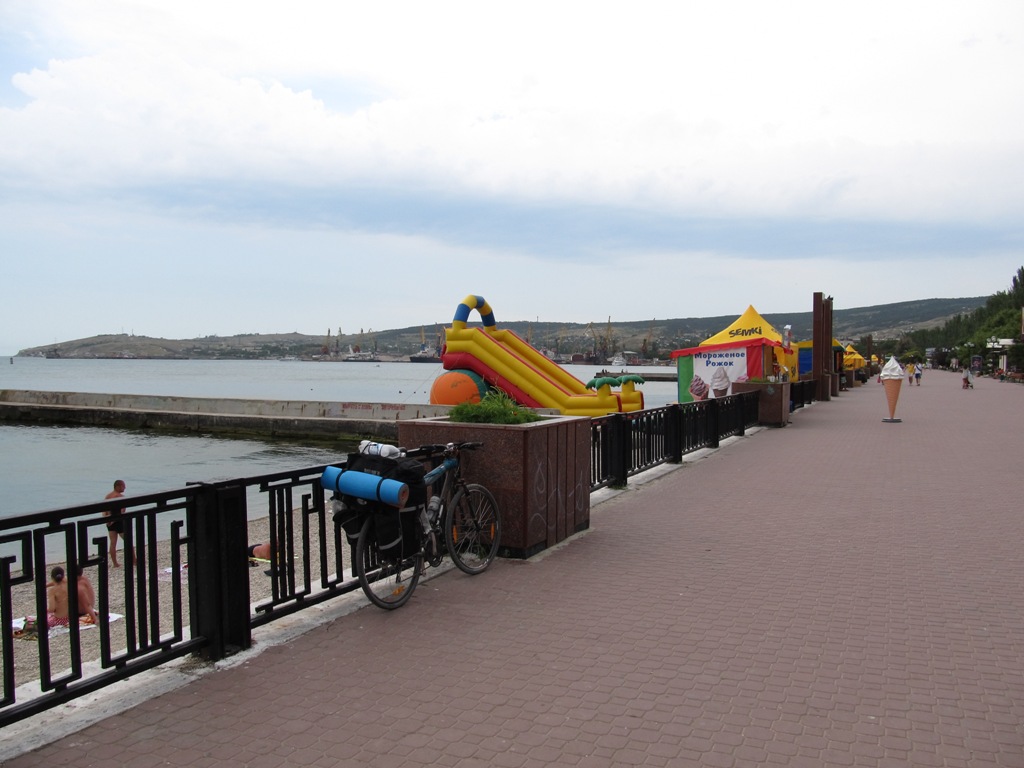 Поначалу небольшие подьемчики; шото солнце жарит уже не на шутку, та и ножки после вчерашнего не особо крутят. Доезжаю до Морского, легкий перекус магазинный, водные процедуры с окунанием раскаленного тела.