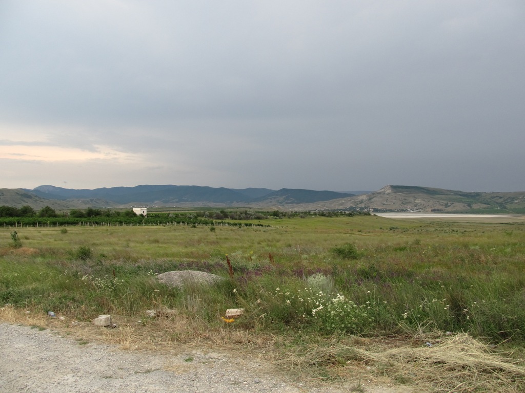 10:00 Каменское. Арабатка закончилась – УРА. Тарюсь в магазине пивом, водой. Небольшой отдых и в путь на Феодосию, по совету местного еду грунтовкой к Владисловке, а потом прямая асфальтная к Феодосии. Не доезжая км 5 до города на 78-ом км отдых в посадке, с приготовлением обеда.