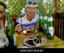 Покатил дальше, и буквально через пару километров был на месте. Лучше-бы я потерпел – приехал бы на 5 минут раньше. На дороге меня ждал Реалист, и я бы проехал бы ресторанчик, если бы не он – надписи были небольшими, и множество деревьев неплохо маскировали этот «Приют». На слова, что здесь недорогой борщ и пельмени, я согласился брать всё. Говорить, что есть не хочется, не имело смысла – Реалист гораздо лучше знал, что мне надо. Он проехал уже не один десяток бреветов. Был заказан борщ и пельмени всего за 15 грн. И как можно быстрее умяв их, покатили дальше.