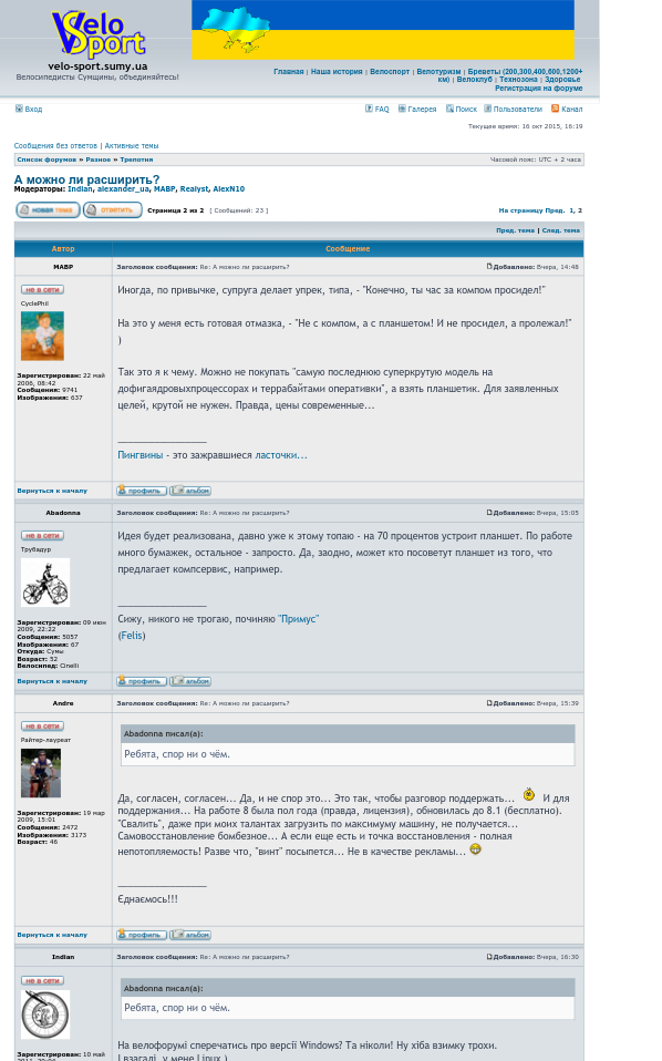 Разработано и поддерживается сообществом "Velo-minus-Sport", г.Сумы, Copyright © 2006-2016