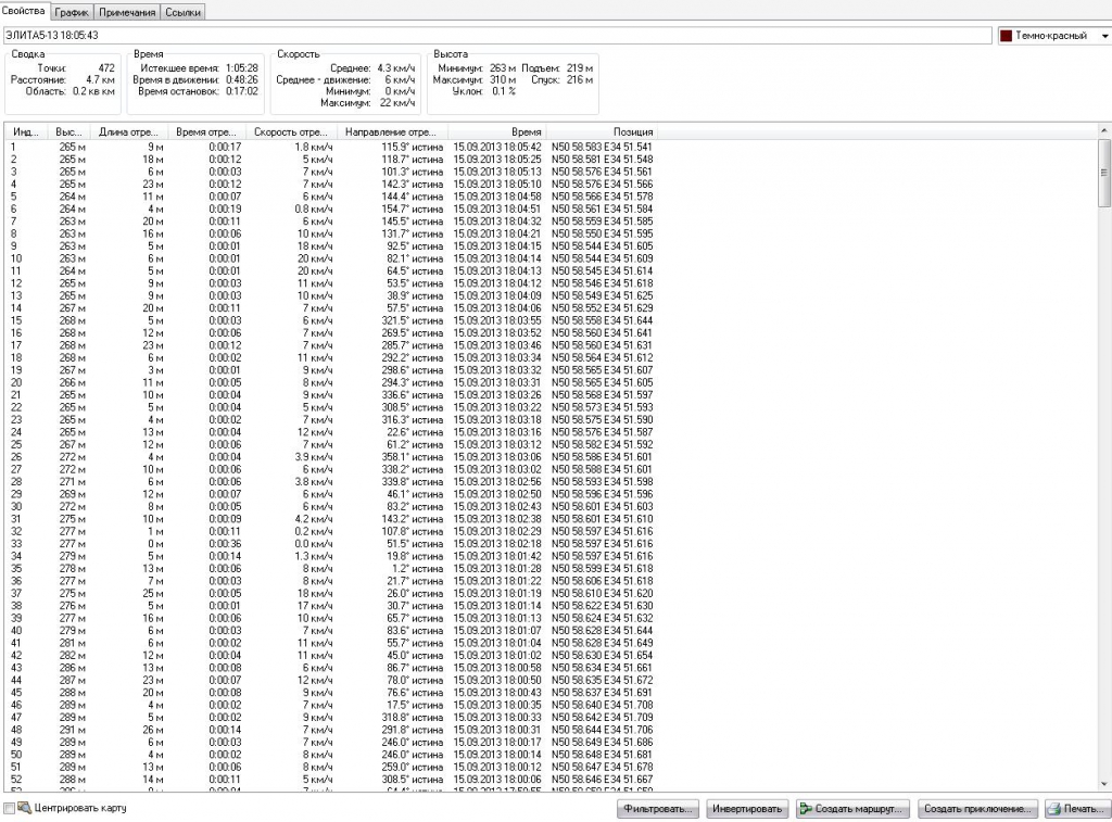 Вот вам более точная информация с гарминовксой программы