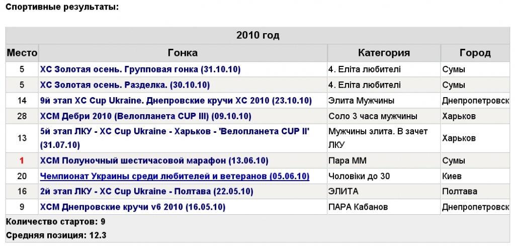 З нами з: 17 грудня 2009, 14:47 Повідомлень: 220 Изображений: 93 Звідки: Сумы-Белая Церковь Велосипед: Giant TCR Advanced 2012 |