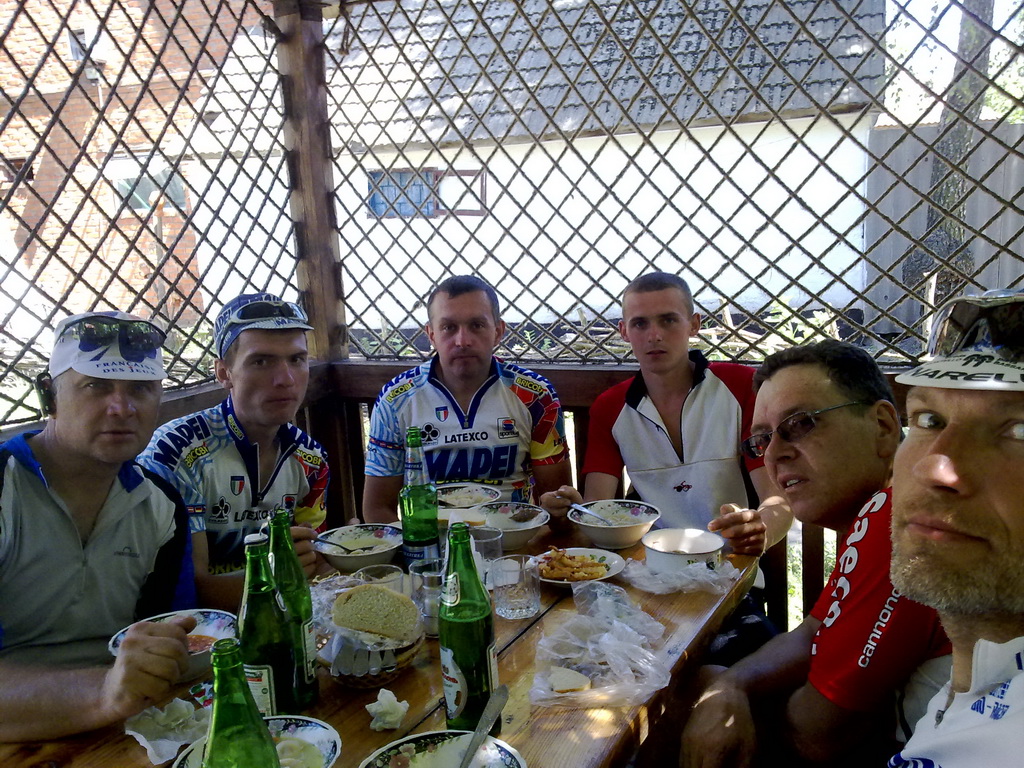 Покатил дальше, и буквально через пару километров был на месте. Лучше-бы я потерпел – приехал бы на 5 минут раньше. На дороге меня ждал Реалист, и я бы проехал бы ресторанчик, если бы не он – надписи были небольшими, и множество деревьев неплохо маскировали этот «Приют». На слова, что здесь недорогой борщ и пельмени, я согласился брать всё. Говорить, что есть не хочется, не имело смысла – Реалист гораздо лучше знал, что мне надо. Он проехал уже не один десяток бреветов. Был заказан борщ и пельмени всего за 15 грн. И как можно быстрее умяв их, покатили дальше.