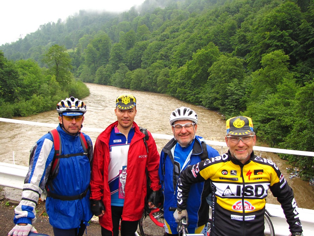 Горы выплыли из тумана даже как-то неожиданно, но уклон был не серьезный, и мы легко катили, офигевая от ландшафтов и постоянного шума реки, которая все время текла нам навстречу...