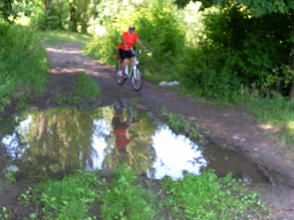 Липкая грязь, отрываясь пластом, накатывалась на колесо и быстро забила все зазоры. Со звуками трения доехали до Барвинково. Встал выковырять грязь пока не засохла... Заодно протестил камеру