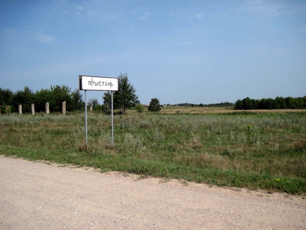 Вот село Пристань. По состоянию таблички и дороги можно судить, что сюда не дошел еще Белавтодор.
