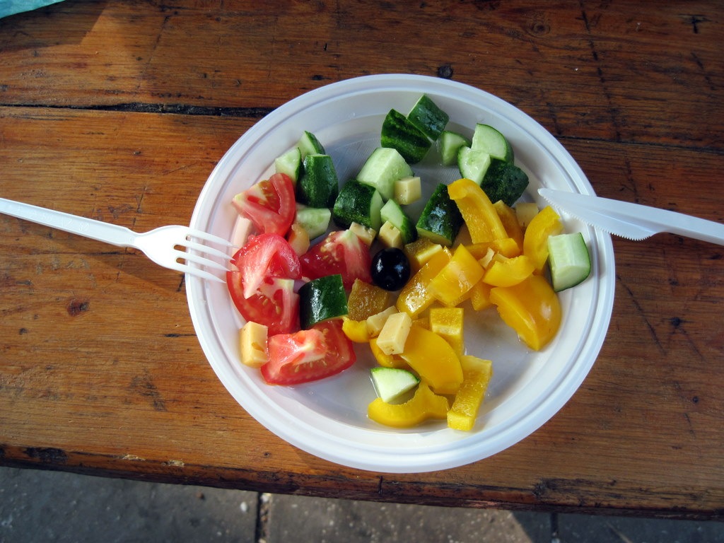 И вот нам приносят заказанный Салат по гречески.