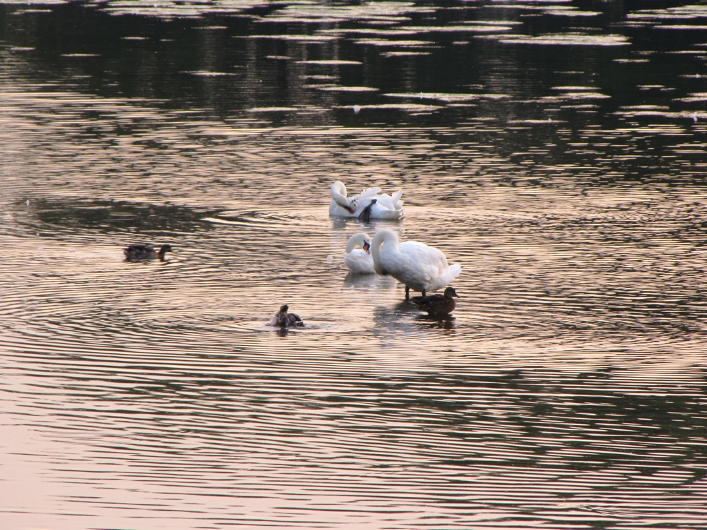 Вот они еще мирно спят, затем потихоньку просыпаются, сонно приводят оперение в порядок, делают разминочные заплывы.