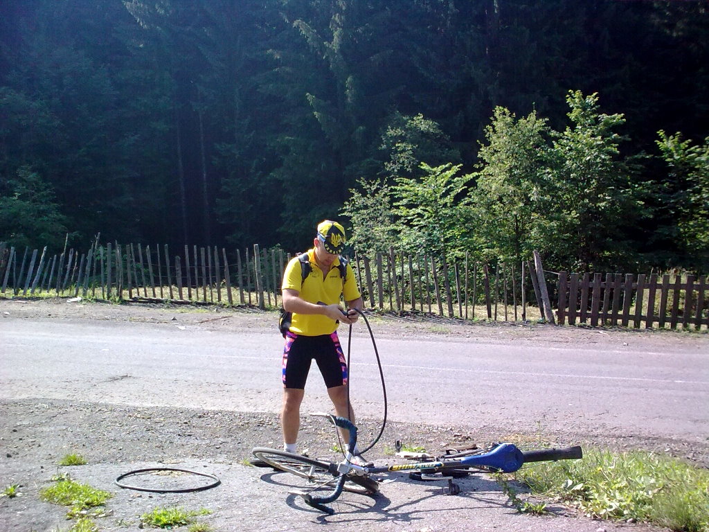 Кто рано встает, тому целый день спать хочется - это не о вело пробегах! Вталось легко, погода была славной! Несмотря на то, что на улице было холодно "Пар шёл изо рта" катилось довольно легко, до первого перевала и за ним до второго! Компания опытного путишественника внушала уверенность в предстоящих километрах!!! Утро было удивительно туманным! ехалось не сильно быстро как для ровнинки, как в дальнейшем оказалось что мы едим в долинах высоченных гор которые мы смогли розглядеть на восходе солнца которое вылезло сквозь туман между хребтов! В начале туранского перевала у меня случился прокольчик, бысто поменяв камерку мы двинули в перед на преодаление вершин! Фотографий мы не делали, так как небыло ни кореспондента ни толком времени! В Межгорье предлагал пополнить запасы воды, на что получило в ответ скоро 8 утра в магазине купим! не поверите первый открытый магазин нашли только между перевалами "не лезьте в гору с пустыми флягими ибо люди там ленивые и работать не хотят" Малость подкрепившись поехали сгоры, которая в дальнейшем оказалась третим перевалом=)) Фото на память и там сплошное движение вниз, несмотря на плохое покрытие средняя была приличной! несмотря на высокую температуру воздуха снять теплое решили в низу, чтобы не продуло на спуске, хотя и по низу лупатосили далеко за 30 потому особо жарко не было!Желание МАВРа увидеть сына а мое побыстрее отдохнуть прибавляло сил, а соответственно и скорости, а катили за 30 под 35 местами под 40, ветер сопутствовал нашим желаниям! бістренько доехав до Стрыя мы с легкостью нашли нужные нам обьекты, гостинницу и ВЧ.... Забрав военно служащего мы отправились в гостинницу на заслуженный отдых! Было достаточно времени чтобы отдохнуть, и набраться сил для следущего сложного дня! Спасибо Гене, внушает он силу духу, который помагает ехать!! :drinks: