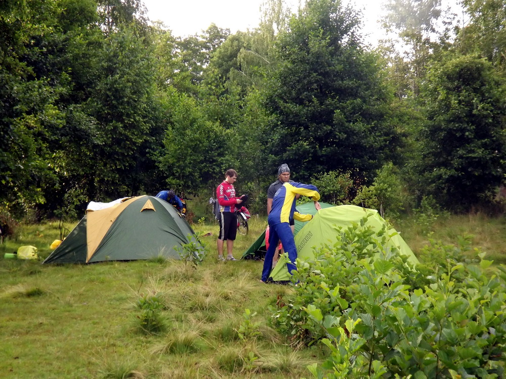 только поставили палатки и начал накрапывать небольшой дождик)