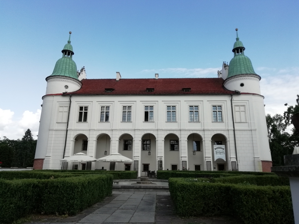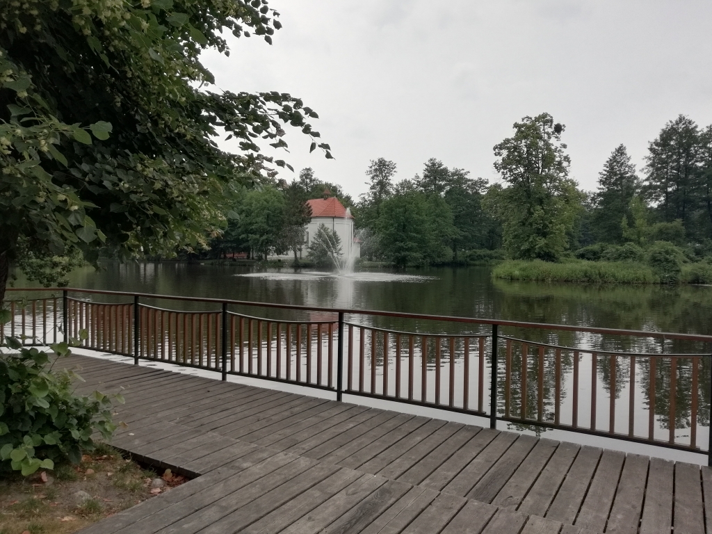 Утром узнали что можно постирать и высушить вещи. Как то с вечера это нас сильно не волновало))) Пока решали все вопросы. Стирка, готовка, сборка вещей. Как обычно начался дождь. Поэтому все решали не торопясь. Как то сильно похолодало. Утепляемся и в дорогу. Так как завтракали рано. То решено еще перекусить. Заскочили в пиццерию. Выехали из Сандомира ближе к обеду. Дорога ведет через поселки. Очень много яблок. Думаю там осенью классно. Стало теплей. Тучи ушли. Попалось красивое дерево черешни. Пошла спрашивать разрешения. Мне разрешили. Еще и следом вышла тетушка с пакетом и стала помогать рвать черешню. Вкусная. Поблагодарили и поехали дальше. По дороге у нас переправа через Вислу. Паром. Прикольная штука. Покатались. Через Тарнобжек проскочили очень быстро. Поехали на озеро. Тем более нам по пути . Велодорожка, скамейки, туалеты. Все условия. Думаю тут встать палаткой тоже не составит труда. Перекусили черешни и поскакали дальше. По дороге город Баранов Сандомирский. Там замок. Заехали. Муж с великами остался возле ворот. А я заплатив денюжку пошла прогуляться. Погода наладилась. Стало совсем тепло. Хороший парк. Сам замок. Несколько экспозиций. А так больше смотреть не чего. Хотя муж мне потом сказал что я пролазила там больше часа)). Скупились воды и поехали дальше. Нам сегодня надо добраться в район Щуцина. Не доехав до Щуцина остановились в Agroturystyka - Anna i Leszek Wójcicki . В доме хозяйка почему то не захотела сдавать комнаты. Но предложила поставить палатку на поле. Мы в принципе и не возражали. Там навес. Стоят столы. Есть розетка. Сдвинув столы. Мы поставили палатку под навес. Зарядили все гаджеты. Высушили все вещи после стирки. Хоть и воспользовались сушкой. Но вещи были влажными. Надо было досушить немного. Под навесом не страшно. Хозяйка принесла электрочайник и 10 яиц (яйца я попросила). Душем можно было воспользоваться в доме. А на ночь и на утро туалет был рядом. Мы очень душевно отдохнули. По полю бегали зайцы. Ходил аист. Вечер был теплым и замечательным. Поужинали и спать.