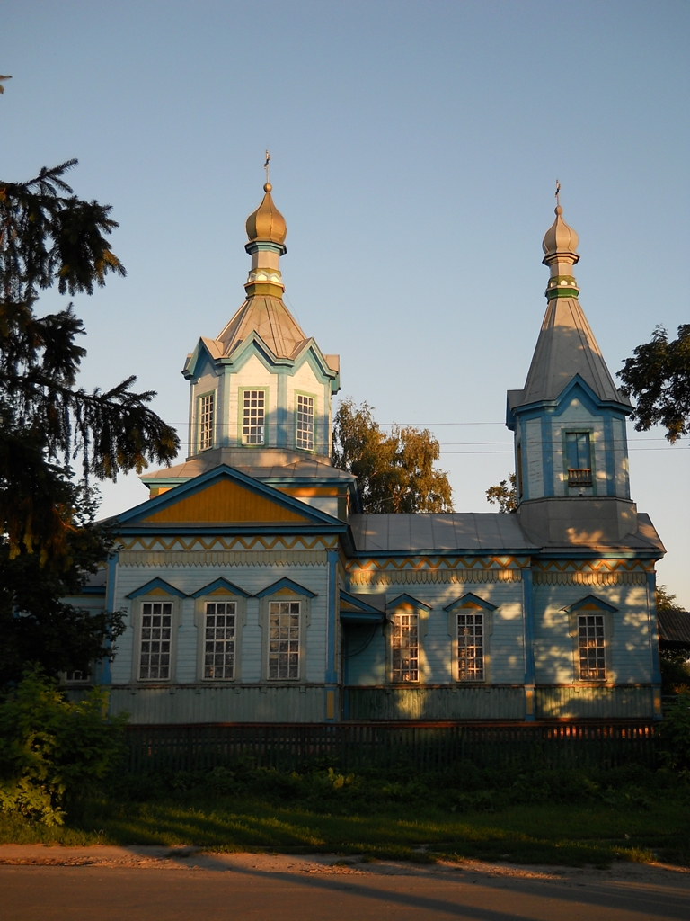 Але в зоопарк ми не поїхали, а повернули знову в бік Десни. В селі Осьмаки побачили ось таку дерев’яну церкву