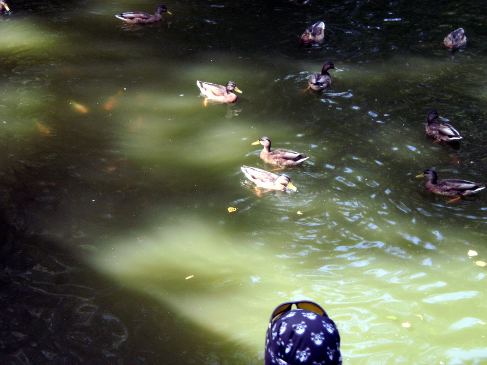 В пруду плаваю почти ручные карпы (на фото видны), которых кормят, как и птиц, с рук.