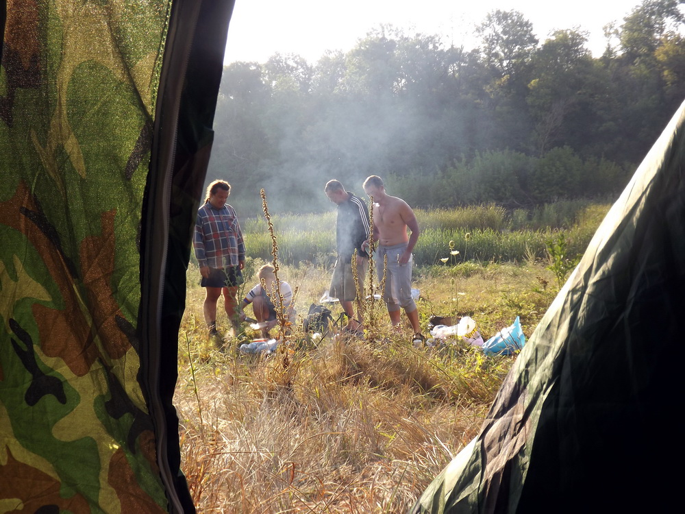 Да, это была самая комфортная стоянка поездки. Тут тебе и река, и отсутствие людей (Иногда, доносились радостные вопли с ближайшего пляжа. Но судя по силе звука, он был на расстоянии не менее 5 км), и утренний туман над Росью.