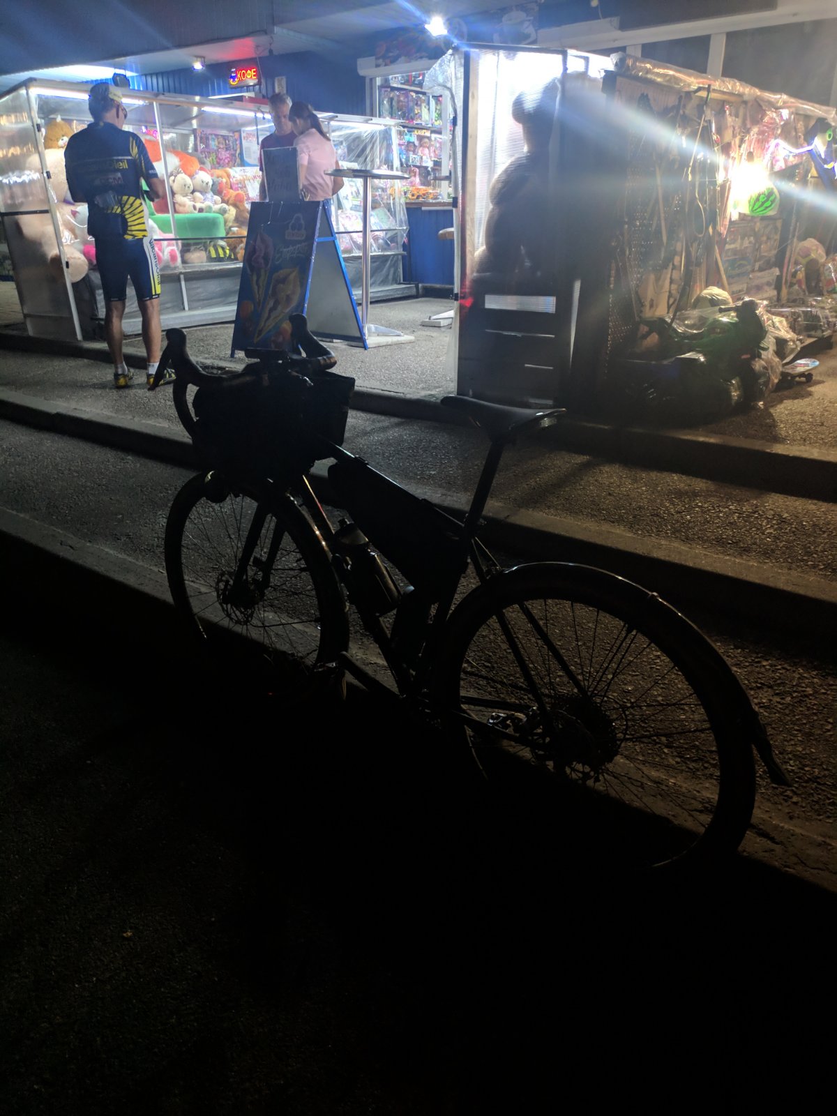 Где-то на 60км отстал от группы и ехал сам. Прочувствовал по полной атмосферу ночной езды.