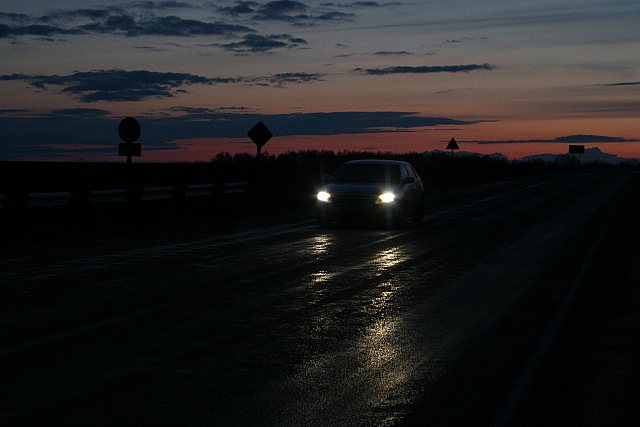 На фото – довольно качественный асфальт. Но уже через 200 метров началась «боевая» дорога, напоминающая что мы устремляемся прочь от цивилизации. После зимы стало ещё больше ям, отчего машину иногда аж трясло. Километр за километром … Но скоро всё завершилось – мы были на месте. Теперь медленная и спокойная езда по лесу … Лес … Глухой лес с множеством дорожек … И разнообразная живность. И понадобилось немного времени, чтобы повстречать оленей перебегающих дорогу. А одного даже сфотографировать: