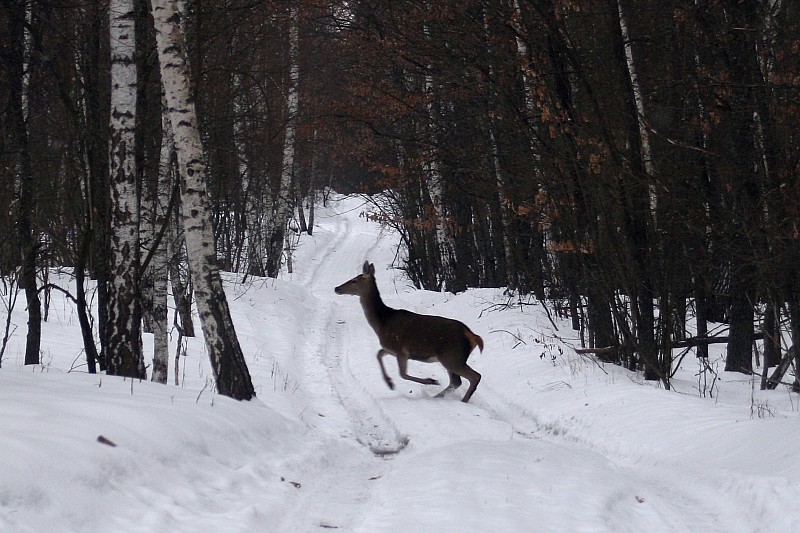 Здесь была замечена косуля – как раз начался сильный снегопад …
