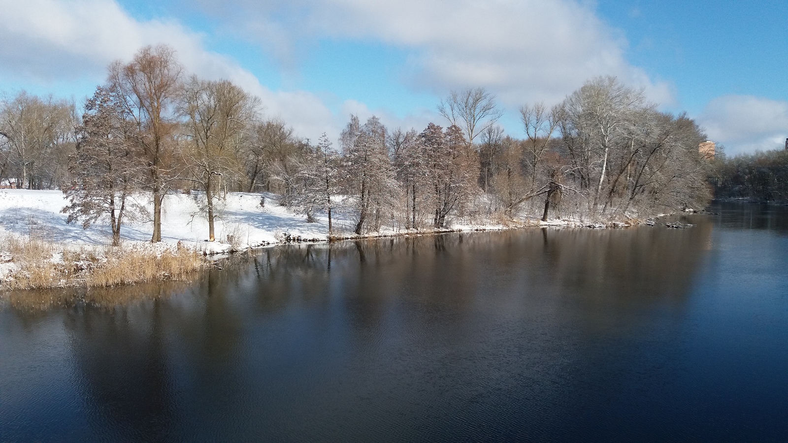 А вот с работы к Судже, да, снегопад на вид стремный, а на ощупь приятный, мягкий и пушистый)). Снежинки "лапатые", прорезаются до асфальта легко, велик идет как по рельсам. Ну смахнул раз в три минуты снег с маски, ну видимость не очень, ну облепило снегом чуть-чуть, ну лужа... Экстрим то где? :D