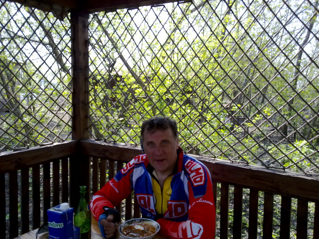 который на сытый организм с лёгкостью был преодолён :D , всю дорогу, вроде и не большой ветер, но среднюю ни как не позволял дотянуть до 25, лишь только в Камышах (115 км) появились заветные цифирьки, которые тут же растаяли после подъёма за Камышами, вторая кратковременная остановка в Гадяче (150 км), купил Миргородской и на Л.Долину (182 км), которая прошла транзитом, поскольку цель "Приют странника" (204 км), где традиционно вкусно, а главное питательно отобедал