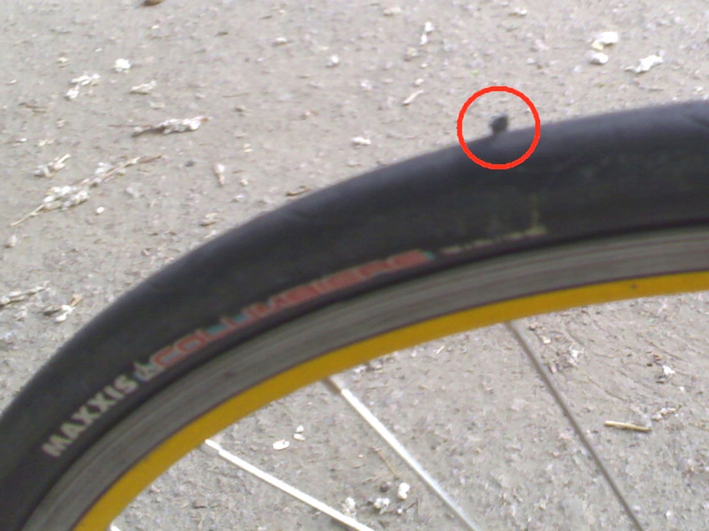 Еще утром прочитал о твоем проколе, мысленно представил картину "мавр бортируется на газончике", трошки посочувствовал. Поехал немножко прокатиться, заехал к родителям смазать цепь, а вот обратно меня не пустил... прокол переднего колеса.