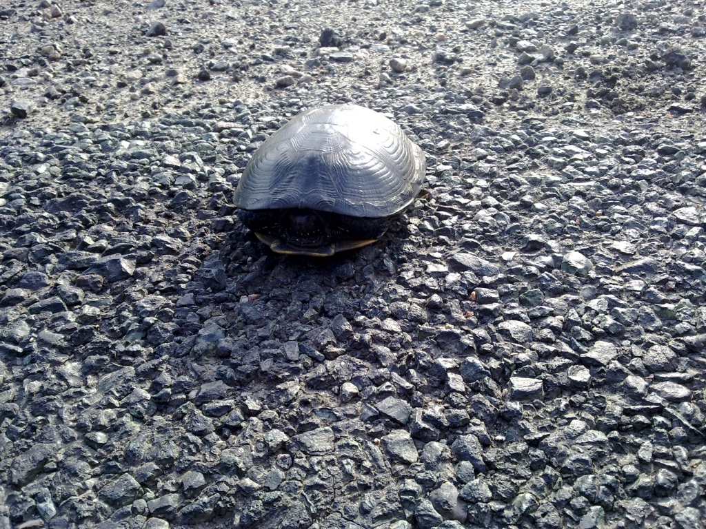 не зміг проїхати мимо не закарбувавши на фото, після фотосесії відніс подалі від дороги, коли тільки но підняв черепашка опісялась %)