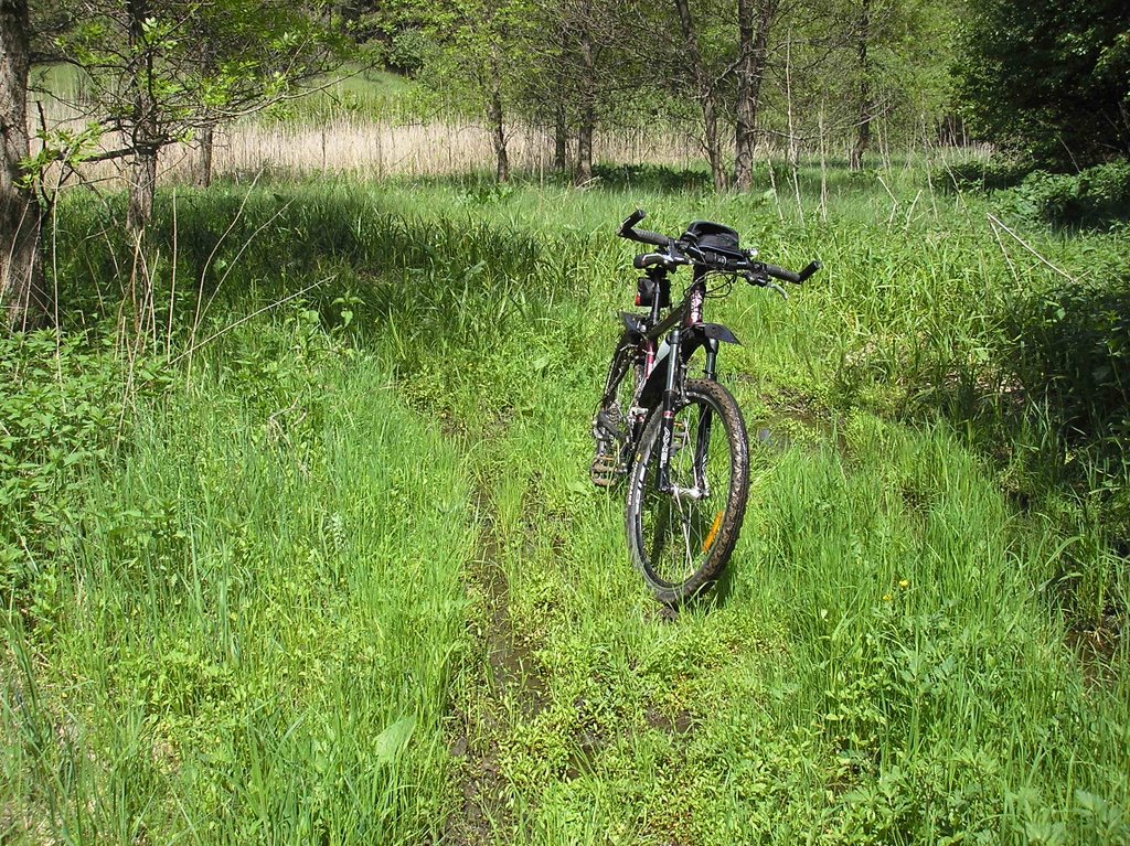 Попытки найти более подходящее место для переправы или объезда успехом не увенчались. Вокруг местность для езды на велосипеде малопригодная… Исследования проводил пешком, добряче пожалил ноги кропивой.