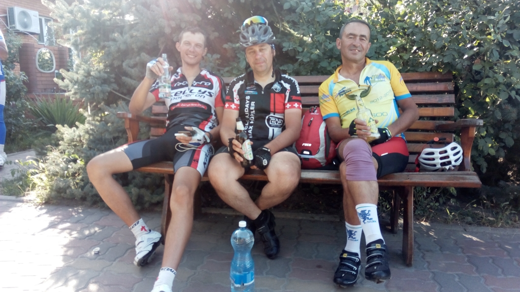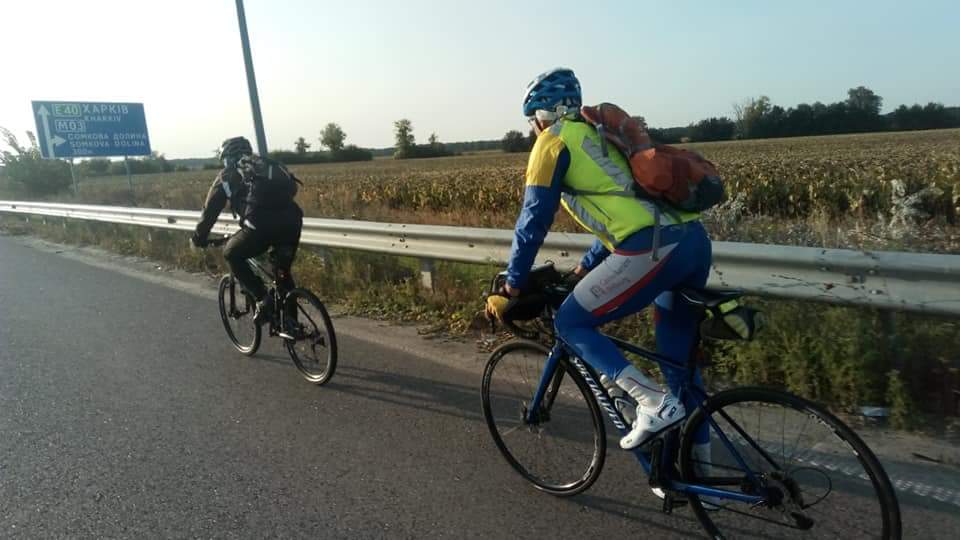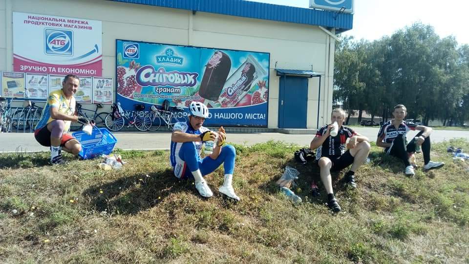 Как кстати оказались у Володи в рюкзачке охотничие колбаски, а у Гены был хлеб еще из дома. Перекусили и поехали. До Пирятина еще 25 км.