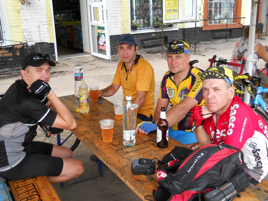 С самого начала темп езды начался не слабый. 30-32 а то и 34 было нормальным явлением. :shock: Но катилось хорошо..:crazy_pilot: Темп задавали Abadonna и Realyst у меня получалось только висеть на колесе. Дорога на Белополье нормальная, а местами даже хорошая, плюс безветренная погода и прохлада. Одним словом до Белополья докрутили бодро. В самом Белополье дороги нормальной нет. Попрыгав на ямках и проклиная узкие и побитые дороги райцентра поехали на Ворожбу. Возле Ворожбы захотелось подкрепиться. Сначала заглянули в магазин за водой