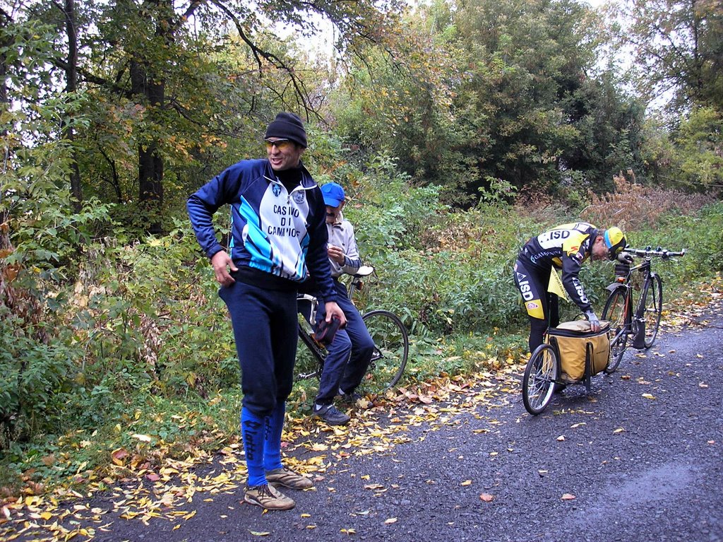Перед Сумами встретил Абадонну и VeloBon-a. У Абадонны был прокол.