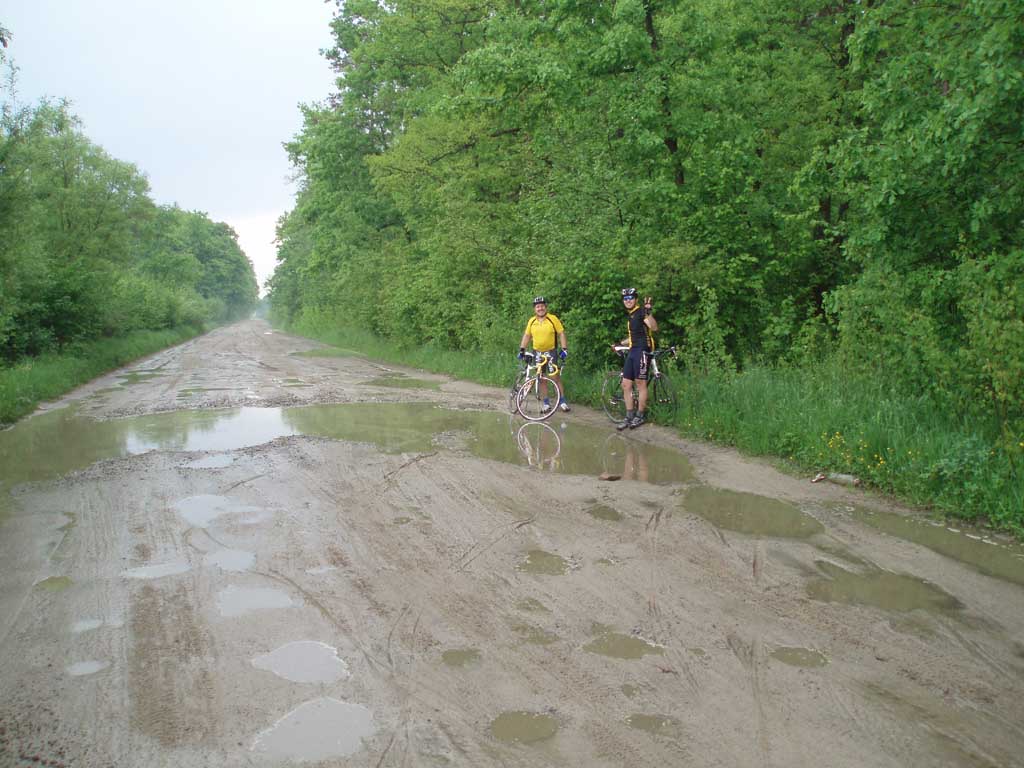 (Потом уже мы старались ехать по тротуарам).