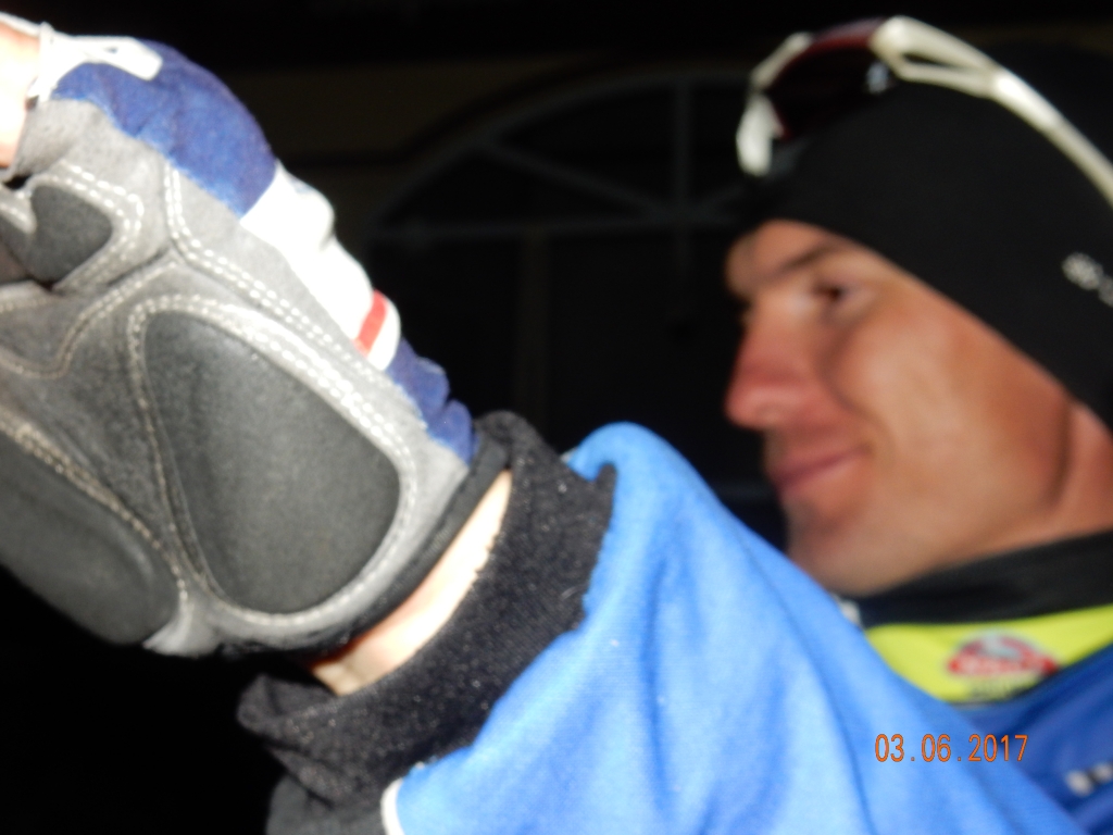 Хорошо, что накануне бревета Слава одолжил мне свои старые шипы на контакты, мои стёрлись в хлам, даже винты не откручивались. Ещё в Недригайлове Лёша Радонов, несмотря на травмированное колено, перемотанное пакетом, подсобил мне с пластиковыми лопатками, иначе я бы бортировался целый час вместо 30 минут. Не представляю как Слава это делает за 4 минуты?!