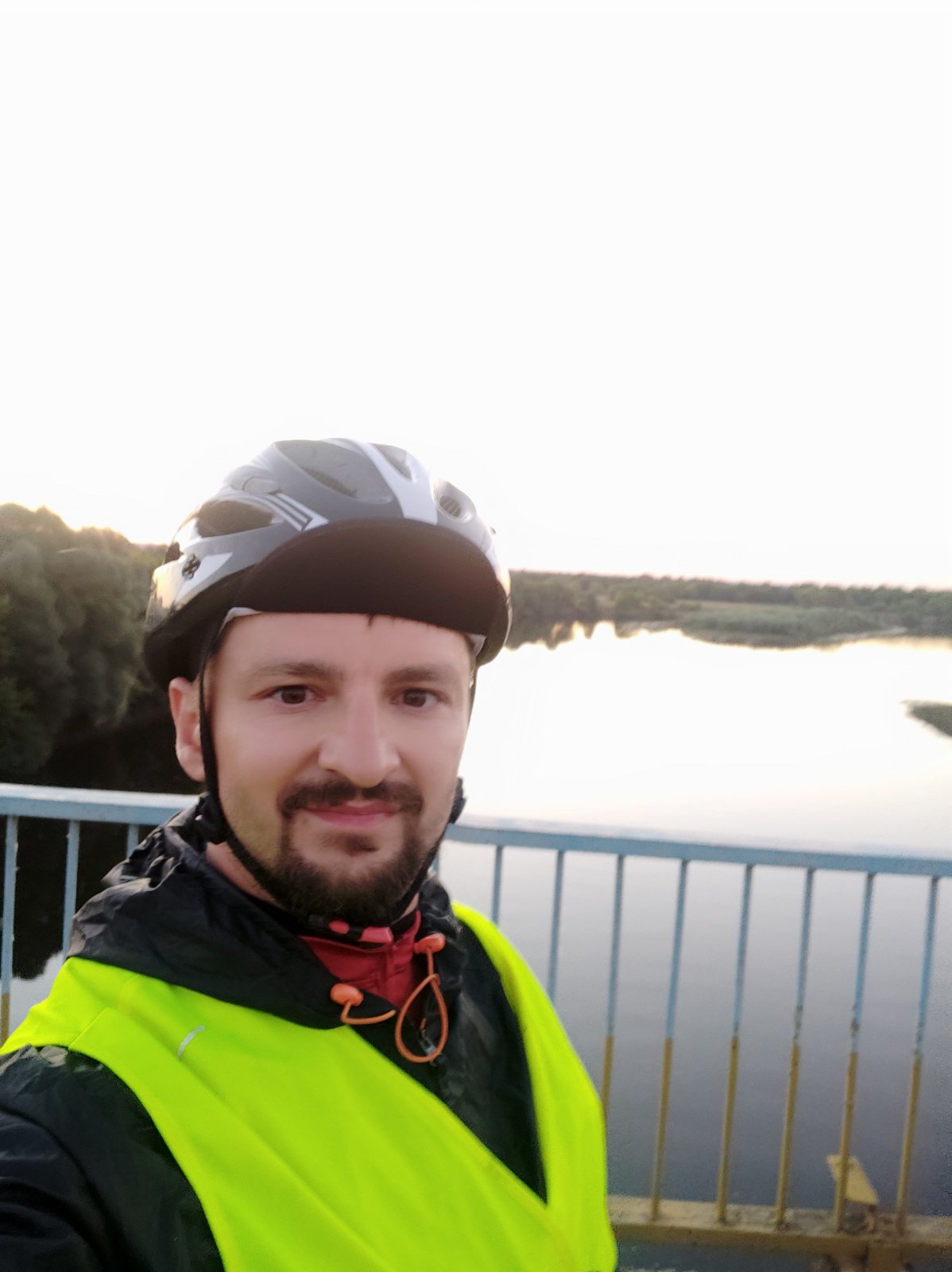 Дальше нам предстояли 80 км до Новгород-Северского. Такой дороги я еще не видел. Латки кортоые сложно обьехать, высотой как не большой бордюр. Это было настоящим испытанием. Единственное что спасало – это невероятная красота вокруг. Так мы доехали до цели, где нас встретил Андрей и проводил до моста через Десну. Скажу честно такой красоты я еще не видел. Десна на фоне заката выглядит божественно. Ради таких моментов и стоило страдать почти 100 км.