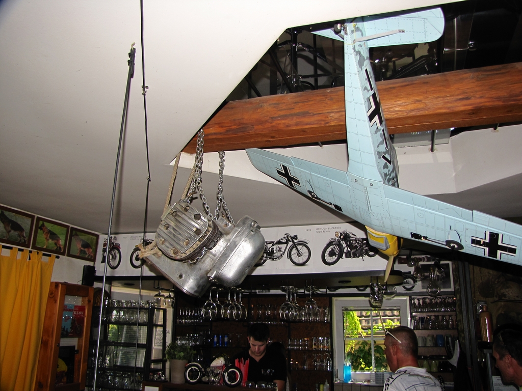 Сверху, если присмотреться над самолетом, на чердаке, оборудована студия, где по вечерам музицирует такая возрастная колоритная банда любителей железа и огоньку.