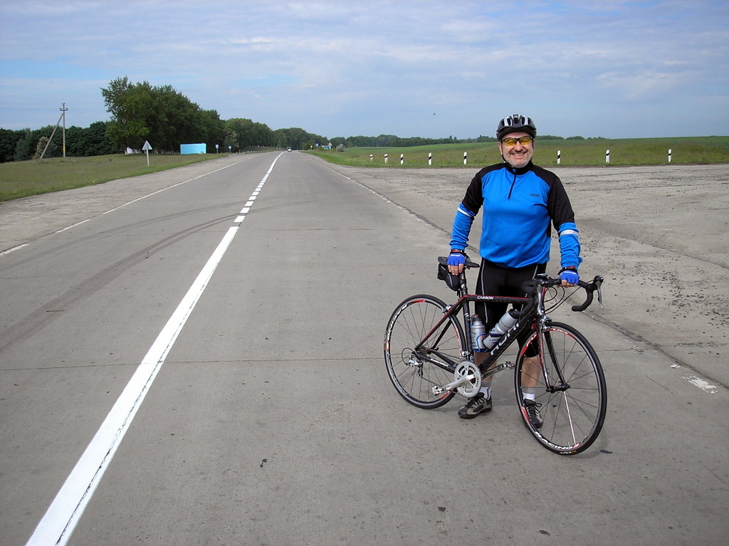 Пока он менял камеру, Дядя Юра дал мне свои шоссейные вело-боты и свой велик. Я прокатился, чтобы прочувствовать.