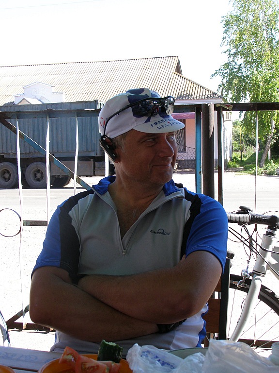 Покатил дальше, и буквально через пару километров был на месте. Лучше-бы я потерпел – приехал бы на 5 минут раньше. На дороге меня ждал Реалист, и я бы проехал бы ресторанчик, если бы не он – надписи были небольшими, и множество деревьев неплохо маскировали этот «Приют». На слова, что здесь недорогой борщ и пельмени, я согласился брать всё. Говорить, что есть не хочется, не имело смысла – Реалист гораздо лучше знал, что мне надо. Он проехал уже не один десяток бреветов. Был заказан борщ и пельмени всего за 15 грн. И как можно быстрее умяв их, покатили дальше.