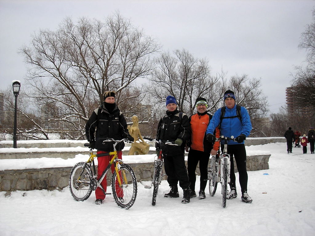 Покатались немного по городу. Я попытался поворачивать на льду и смачно гепнулся. Ничего не успел понять, а уже лежу вместе с великом.