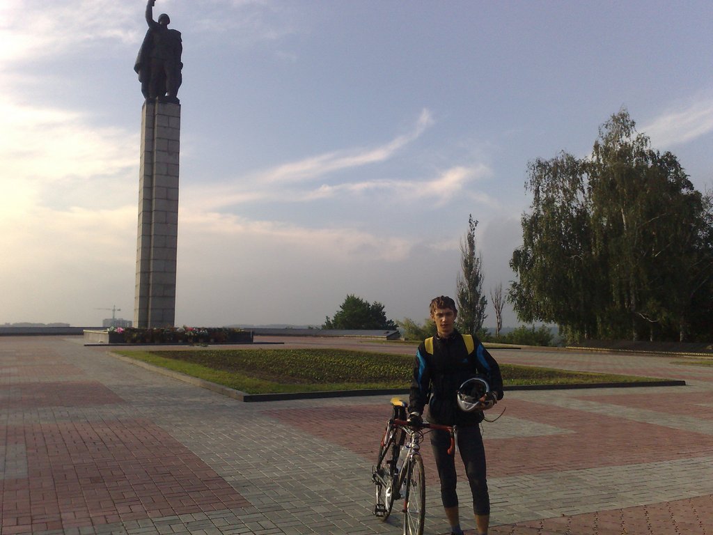 Так скзать свершилось! Подехал я rayder_3d к мемориалу на ул. Кирова где-то в 6.40 доберался из с. Самотоевка на первой маршрутке, вел был оставлен на офисе, Там меня уже ждал с 6.00 Orfey онже Саша. Саша на шоссере я на гибриде. Выехали в 6.50 думали еще кто-то подтянется. Погодка обещала быть веселой, вобщем авантюра чистой воды! но решились ехать так как поездка уже откладывалась, не хотелось заслужить репутацию пустозвонов. Стартонули живенько, так как ветер был попутным скорсть держелась 30-40. Через километров 25 заметел цепь у Саши начало стремно поскрипывать, а впереди 200км решили сехать в с.Голубовка (там у меня живет бабуля) для смазки цепи, потеряли минут 25 времени. докатили до " Танка" сфоткались там, повезло какая-то машина стояла, попросили водилу (единственная фотка вдвоем) дальше до Штеповки сверяясь с легендой (поворот на лево) перед спуском знак начало населенного пункта, на подеме заметили стремный поворот на лево решили проехать дальше, конец населенного пункта, возвращаемся назад, в начале асфальт потом грунтовка спрашиваем у бабулек как до центра проехать? -прямо и на право внутки! едем на встречу паренек мелкий - там грязь! Танки грязи не боятся! ну и приехали, тормозные колодки у Сани забились заблкировало колеса ( он потом пол дороги их чистил). Велы на плечи и назад, думали психонуть и поехать на Ромны и назад, но поспрошав узнали что поворот гораздо дальше! на котором кстати нет никакаих указателей. Но решились придерживаться первоначального плана. Дальше через Штеповаку на с.Руда и согласно легенды два Т-образных прекрестка. На протяжении всего пути нас все время доганял мелкий дождик, все время гадали когда-же начнется дождь, но природа была к нам блгосклонна. Первый перекус мы сделали у "Катюши" естественно перед Этим устроив фотосесию, отдых минут 15. Далье Лебедин, остановкав с.Будылка у мемориала пару снимков и в путь. Вот после Чупаховки началось самое интересное, ветерок повернулся к нам что называется "Лиццом", по прогнозам 5м/сек. обещали, но было гораздо круче! Ветер на что называется "Порвал", мы держали темп 20-27км/ч, там видимо и потянул связочки под коленяни на икрах. Саня молодой да еще и легкой атлетикой занимался (бегом) и вел полегче, а я еще велосуку на багажник поцепил. Вобщем участок Чупаховка-Ахтырка был самым трудным, и силенок отобрал нормально. В Ахтырке ниче особенного, остановились у мемориала несколько фото и в путь, питались найти какую нть кафешку пообедать, тщетно, решили дотянуть до Клементово, заточили по "сникерсу" потому как начало появлятся легкое чувство голода.До Клементово доехали нормально, ветер стал боковой крутить стало легче, пообедали в кафе "Далнобойщик" по рекомендации какой-то девченки, еда оказалась очень вкусной (жаркое в горшочке, салат и чай) отдых 30мин. Быстренько докатили до Тостянца, фото у мемориала, в магазине затарились пирожками(которые оказалсь оч скуснымы!), и дальше на Боромлю. Скорость значительно упала благодаря мне, побаливали ростянутые связки, и немного чувствовалась усталость. Так-что частенько повисал у Сани на колесе, саня вообще боец матерый, и темп зачастую задавал он. В Боромле решили не останавливаться и поехали дальше, на очередном подеме остановились перекусили пирожками и покатили дальше. Перед в В.Сыроваткой пересекли отметку 200км avs 23.1км/ч время в седле 8.40. На вез