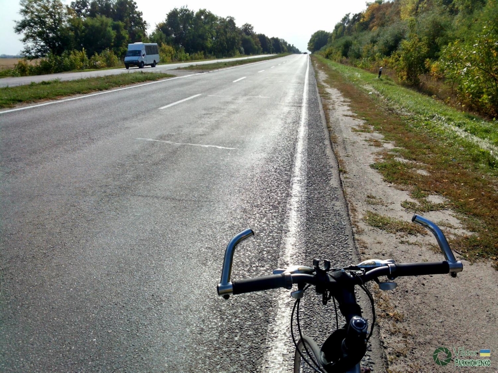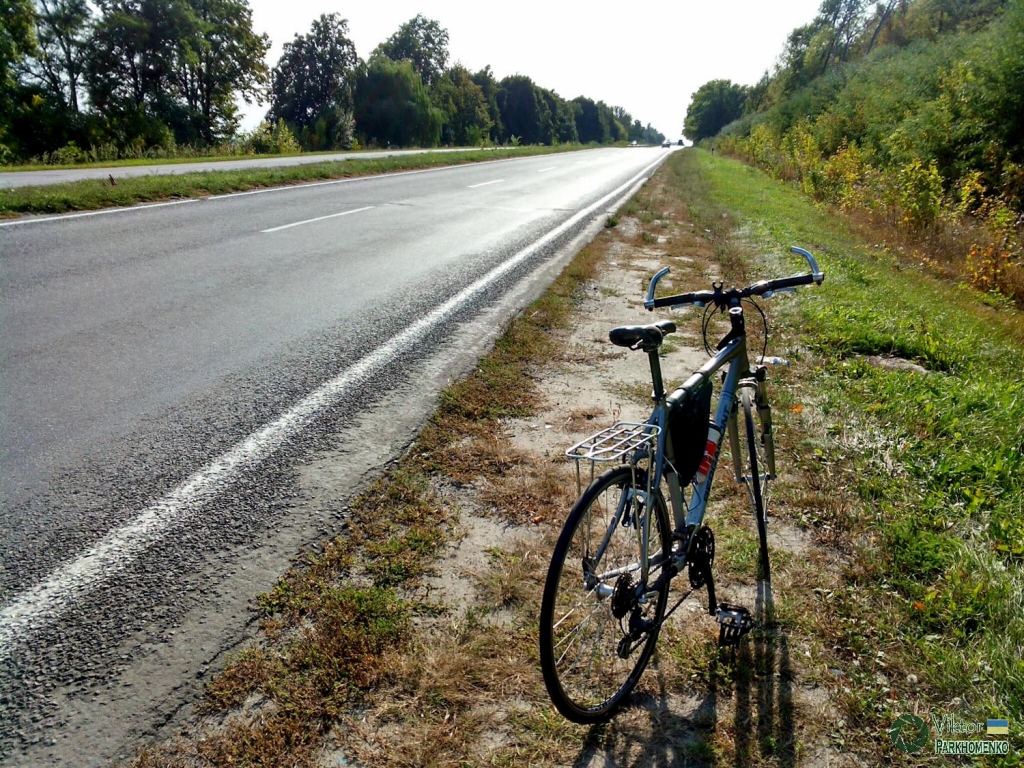 Скільки разів я їздив цією дорогою? Разів сто чи більше? Точно не відповім, але це не набридає – кожна поїздка унікальна! Навіть коли ти вже знаєш з закритими очима увесь маршрут і де у асфальті ями чи пагорб. Навіть фотографій схожих не буває – кожен раз бачиш щось новеньке. Занадто я поринув у роздуми – не помітив як приїхав Андрій. Одразу поїхали – погода була не теплою, тому краще рухатися. Отже подорож почалася… Слобожанщина – поля, луки та ліси… Асфальт у Юнаківському напрямку не дуже якісний, хоча звідусіль видно спроби відремонтувати його, але варто трохи розігнатися як мене починає трусити – тоненькі колеса не амортизують анітрохи! Але на рівних ділянках їхати набагато легше, тому на тряску я не звертаю увагу.