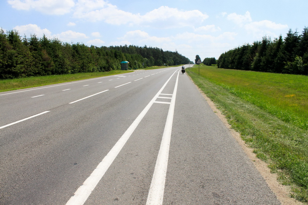 Самые показательные дороги, естественно, в Минской области, как основные, так и второстепенные. Между областными городами лежит идеальный асфальт, областные дороги отличные. В Украине таких дорог нет даже по основным направлениям. Проехав всю страну мы видели как строят дороги, какие подушки делают, какой слой чернового асфальта, а потом и основного. Делают даже сливы! По всей стране не видели волн от асфальта. В городах об этом даже и речи не может быть. Очень много видел прямоугольных вырезов на дорогах – берут пробы и контролируют количество закатанных в асфальт денег. И здесь сумма выделенных и сумма освоенных денег совпадают.